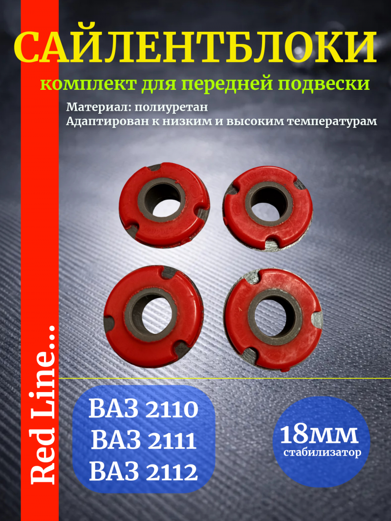 Комплект сайлентблоков из полиуретана - ваз 2110, 2111, 2112 ПИК передний комплект с усиленными стойками стабилизатора