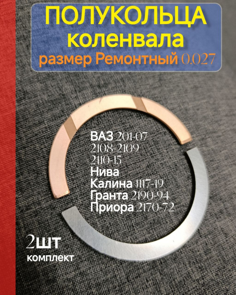Полукольца упорные коленвала 2шт. (ремонт 0,027) 2101, 2108, 2110, Калина 1118, Гранта 2190, Приора 2170, Нива 2121