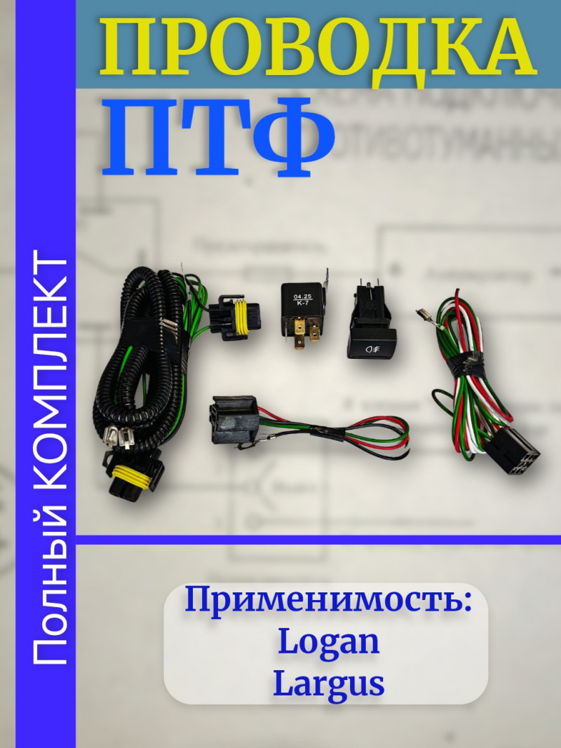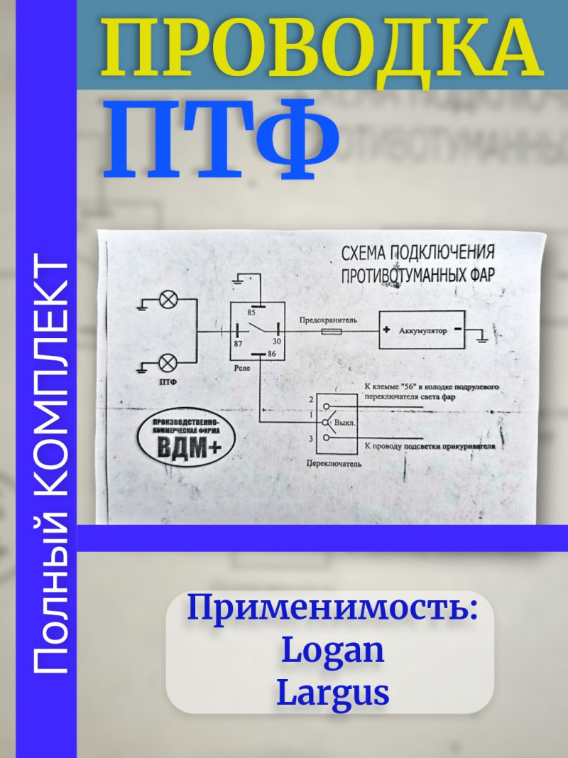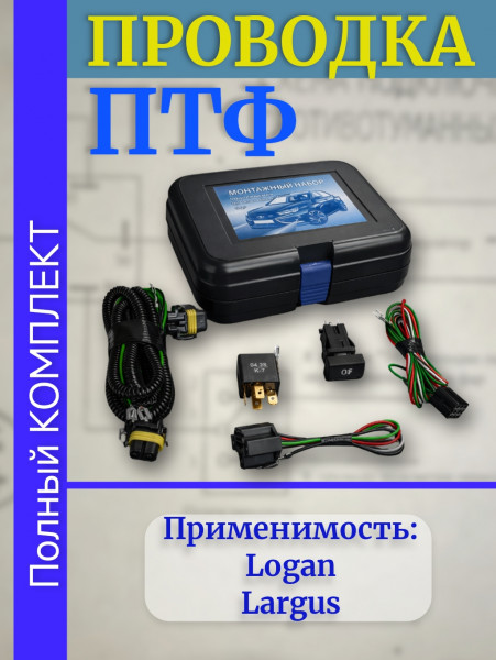 Проводка - провода подключения ПТФ - монтажный набор противотуманных фар ВАЗ LADA Largus, Renault Logan в сборе ВДМ+ oem rs90-3724243