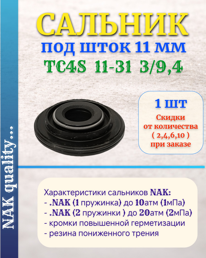 Сальник под шток 11 мм в размере 11*31*3/9,4 NAK тип сальника TC4S