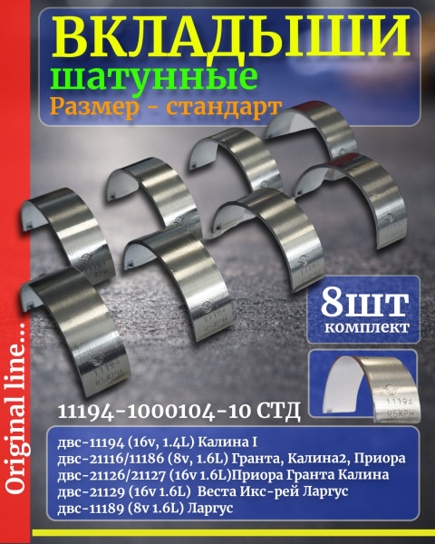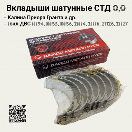 Вкладыши шатунные - 16v ваз 2170 приора калина гранта - двс 11186, 11189, 11194, 21116, 21126, 21127, 21129 - СТД 0,00 ЗМЗ-Дайдо - комплект 8шт - 11194100010410